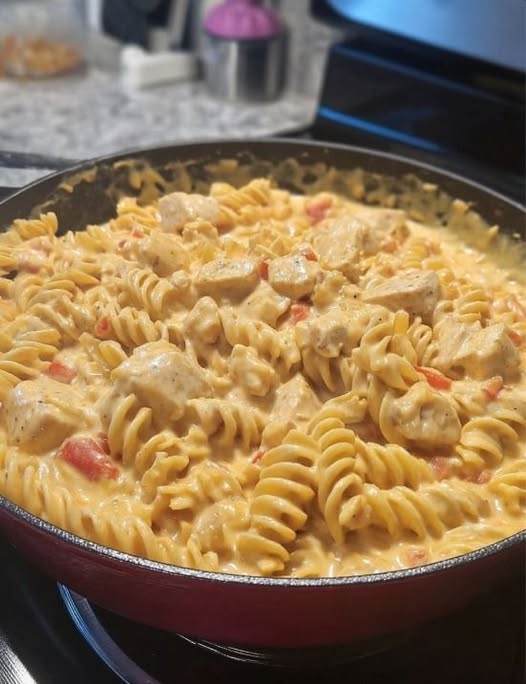 One-Pan Chicken Rotini with garlic-herb chicken and rotini noodles