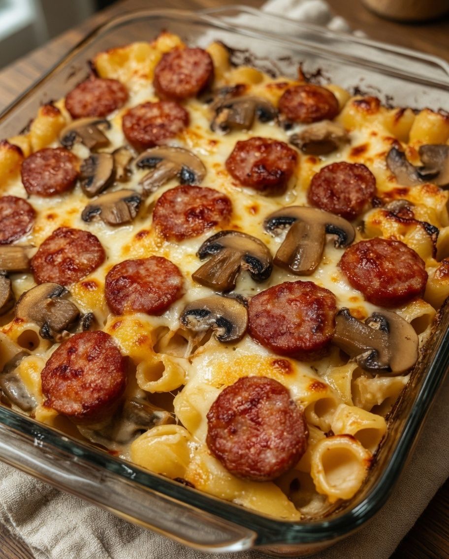 - White Sauce Version: Swap the marinara for a homemade Alfredo sauce for a “White Sausage and Mushroom” bake.
