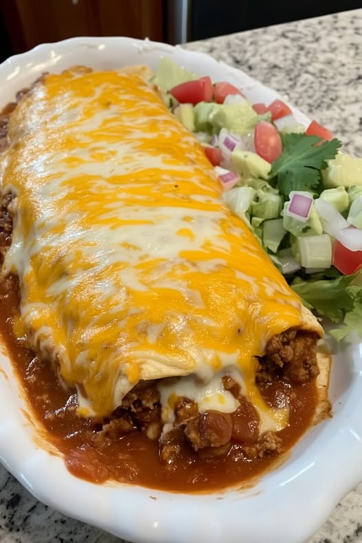 This is the “blue-ribbon” standard of New Mexican comfort food. The star of the show is the Chimayo Red Chile—a legendary heirloom pepper from northern New Mexico known for its complex, earthy sweetness and a heat that warms you without overwhelming the palate. In this dish, we wrap seasoned ground beef and velvety pinto beans in a soft flour tortilla, but the magic happens when the burrito is “smothered” (drowned) in that deep crimson sauce and topped with a blanket of melted cheese. It’s a substantial, “fork-and-knife” meal that represents the heart of high-desert hospitality.