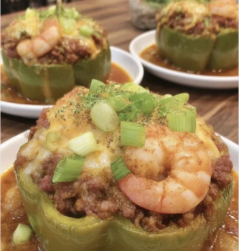 If you are looking to bring a vibrant, festive, and incredibly flavorful “Mardi Gras” energy to your dinner table, look no further than these Cajun Surf & Turf Stuffed Peppers. This dish is a spectacular celebration of Louisiana-style soul food, combining the smoky richness of land with the succulent sweetness of the sea. Imagine a vibrant bell pepper “vessel” overflowing with a savory filling of fluffy rice, spicy Andouille sausage, and tender, seasoned shrimp—all bound together by a zesty tomato base and the “Holy Trinity” of Cajun aromatics. Every forkful offers a complex dance of heat, smoke, and herbal freshness, finished with a melted blanket of pepper jack cheese that pulls everything together. It is a hearty, all-in-one meal that feels like a gourmet waterfront dinner but is simple enough to master in your own kitchen. Whether you’re hosting a dinner party or just craving a bold escape from the ordinary, these stuffed peppers deliver a high-impact, sensory-rich experience that will have everyone asking for seconds.