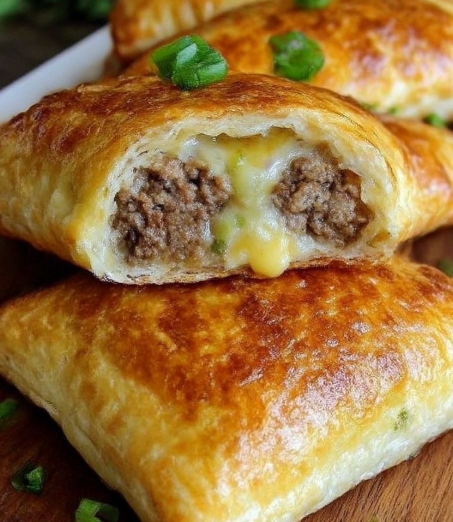If you are looking for the ultimate handheld comfort food that brings the festive spirit of a taco night into a neat, flaky package, these Cheesy Beef Taco Pockets are your new best friend. Imagine a golden-brown, buttery crust that shatters at the first bite, revealing a molten interior of seasoned ground beef, zesty green chilies, and a double-dose of melted cheddar and Monterey Jack cheese. These pockets are the “gourmet” answer to the frozen snacks we all loved as kids—only these are packed with fresh aromatics and high-quality ingredients. They are perfect for a busy weeknight dinner, a standout appetizer for a big game, or even a portable lunch that actually stays satisfying. The combination of the savory, spiced beef and the creamy, gooey cheese tucked inside a crisp dough creates a sensory experience that is both nostalgic and completely elevated. Get ready to transform your standard taco ingredients into a portable masterpiece that will have everyone reaching for “just one more.”