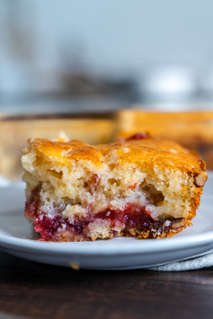 Bake in a greased 9×13 pan at 350°F (175°C) for 35-40 minutes. Avoid overbaking to keep the internal chocolate chips melty and the cake moist. Let the cake cool completely before frosting to ensure the cream cheese frosting doesn’t slide off.