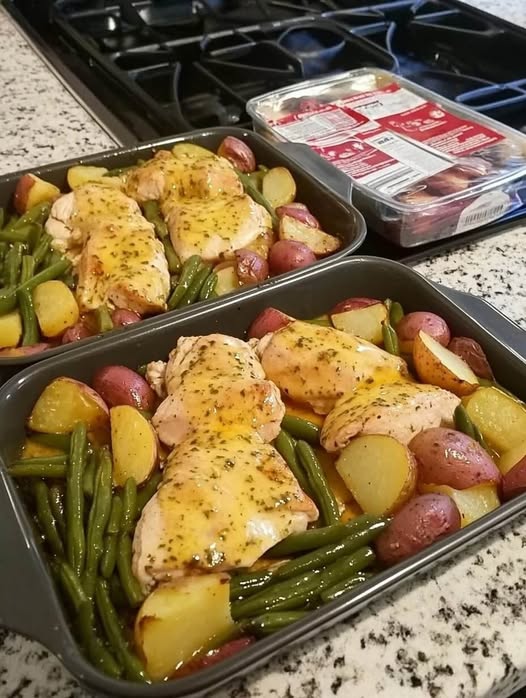 • Increase the oven temperature to 220°C (425°F). Bake for another 15–20 minutes until the chicken reaches 74°C (165°F) and the potatoes are fork-tender with dark, crispy edges.