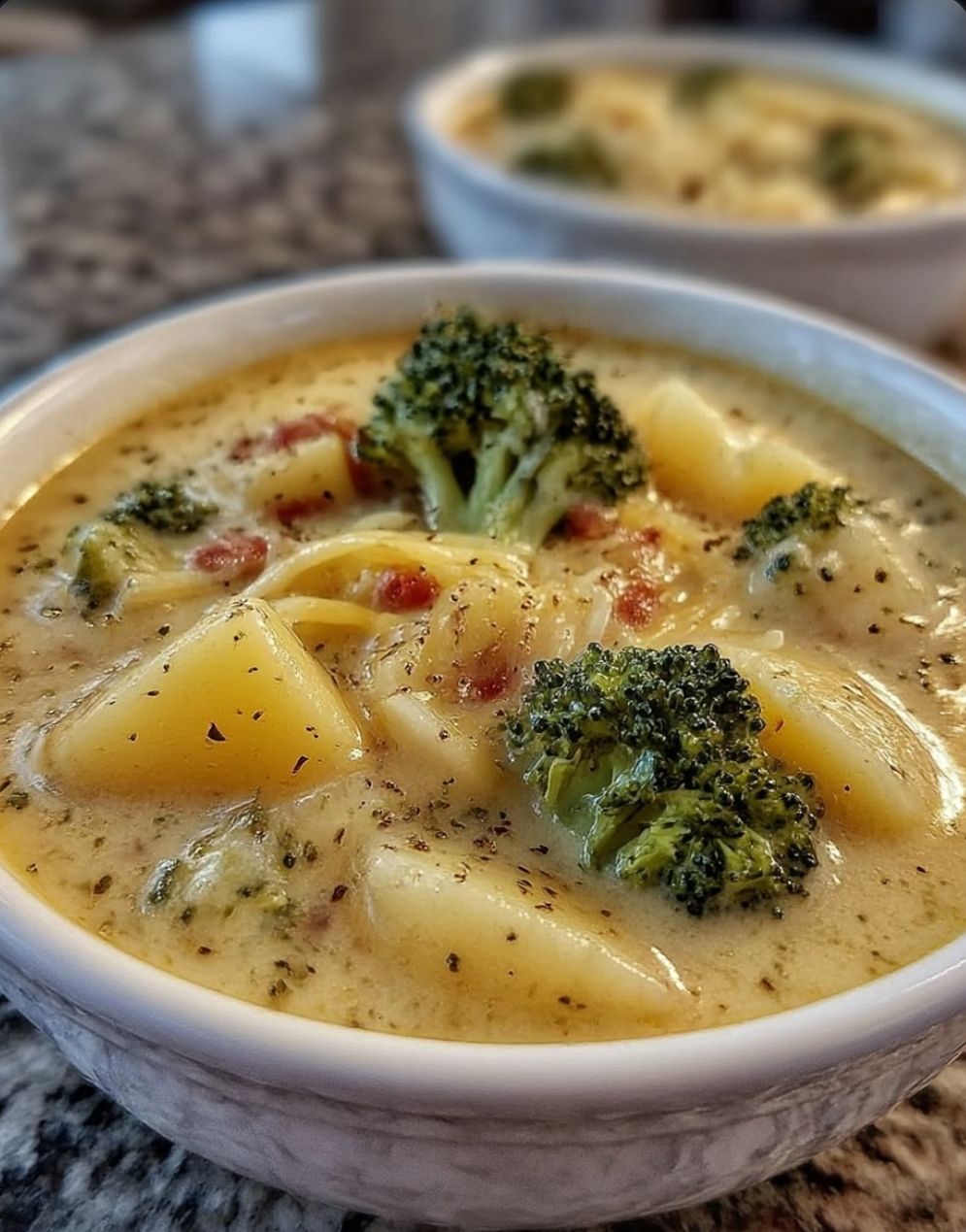 There is a specific kind of magic found in a bowl of soup made by a grandmother. It isn’t just about the ingredients; it’s about the slow simmer, the heavy cream, and the way the vegetables are cooked until they practically melt into the broth. This Cozy Grandma’s Broccoli Potato Soup is a nostalgic trip back to a warm kitchen on a rainy Tuesday afternoon. Unlike modern “quick” soups that keep the vegetables crisp, this version leans into a velvety, thick, and deeply comforting texture. Imagine tender chunks of buttery gold potatoes and soft florets of broccoli bathed in a rich, cheesy base that has been seasoned with just a hint of garlic and nutmeg. Every spoonful feels like a warm hug, offering a savory depth that only comes from building flavors layer by layer. Whether you are feeling under the weather or just need a culinary escape from a hectic day, this soup is the ultimate “soul food” that turns a few humble produce items into a masterpiece of home-style cooking.