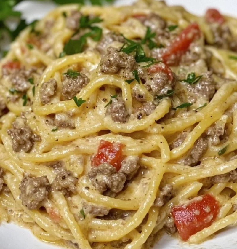 In the world of busy schedules and long days, the “One-Pot” meal is a culinary saint. This Creamy Italian Spaghetti & Ground Beef takes the classic flavors of a hearty Bolognese and elevates them with a luxurious, silky finish—all while saving you from a sink full of dishes. By cooking the dry pasta directly in the sauce, the starch from the noodles is released into the liquid, creating a naturally thick and velvety texture that clings to every strand. Imagine savory browned beef, aromatic garlic, and zesty marinara softened by a splash of cream and a mountain of melted Parmesan. It is a warm, bubbling pot of pure Italian-American comfort that comes together in under 30 minutes. Whether you’re feeding a hungry family or just need a reliable, delicious meal with minimal cleanup, this recipe is guaranteed to join your permanent rotation.