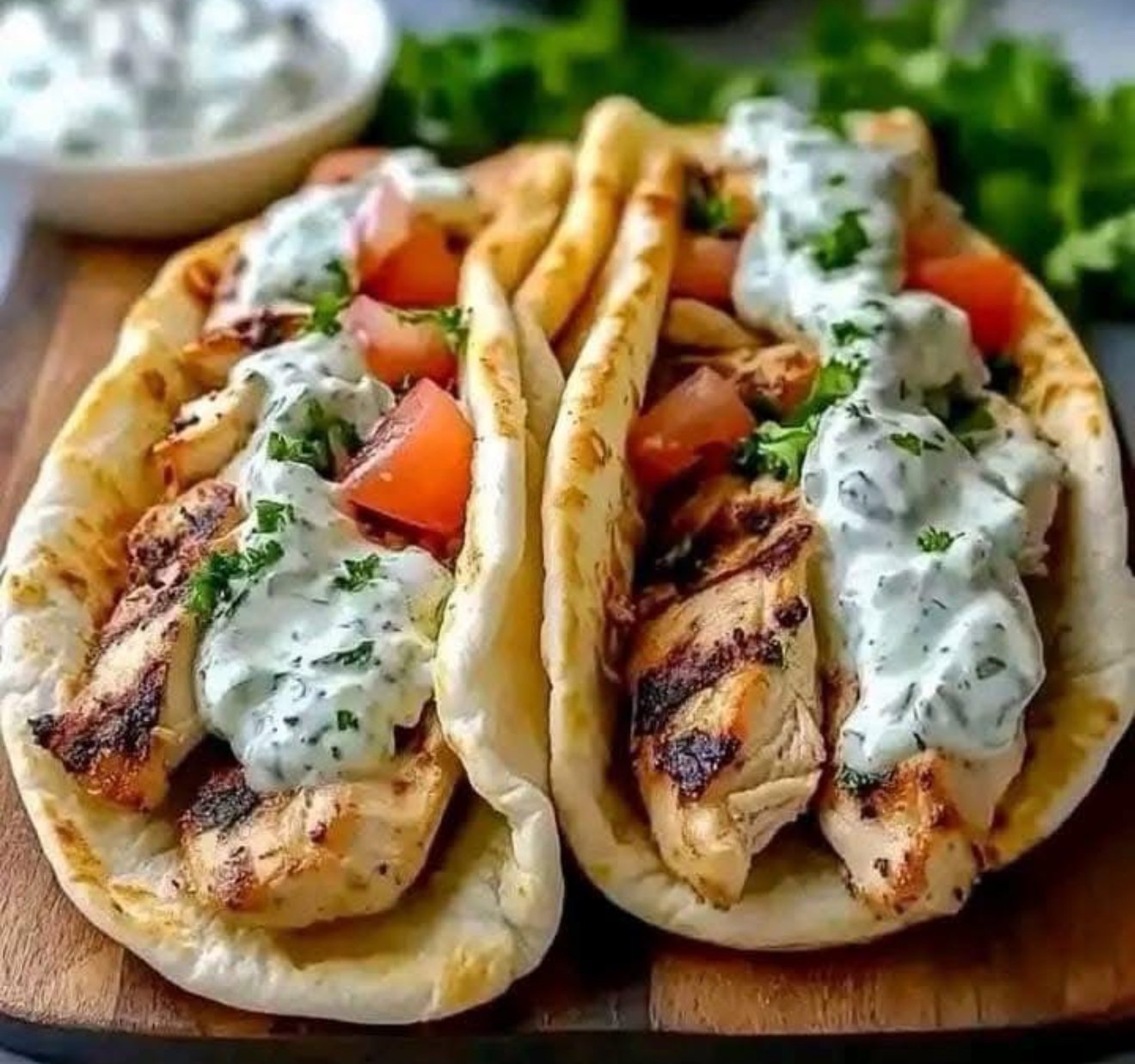 - Assemble the Gyros: Warm pita breads. Spread each with tzatziki, add sliced chicken, red onion, chopped tomato, and fresh parsley. Fold and serve immediately.