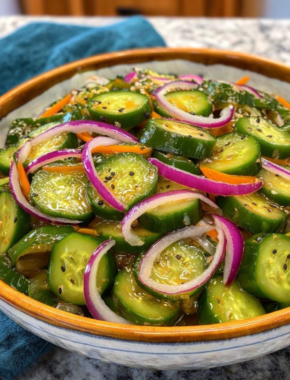 In the vibrant world of Korean cuisine, the meal is never truly complete without banchan—the array of small, flavorful side dishes that accompany the main course. Among these, Oi Muchim (literally “cucumber seasoned”) stands as a perennial favorite. This salad is a masterclass in culinary balance: it is simultaneously spicy, sweet, tangy, and incredibly refreshing. Unlike Western pickles that sit in brine for weeks, Oi Muchim is a “quick” salad designed to be eaten fresh, preserving the cucumber’s signature crispness. Imagine translucent, emerald-green slices of cucumber tossed in a ruby-red dressing of smoky chili flakes, toasted sesame oil, and sharp garlic. Each bite delivers an initial snap followed by a cooling burst of water and a lingering, savory heat. It is the perfect antidote to rich, fatty grilled meats like Bulgogi or Galbi, but it’s just as delicious as a light, healthy snack on a sweltering afternoon.