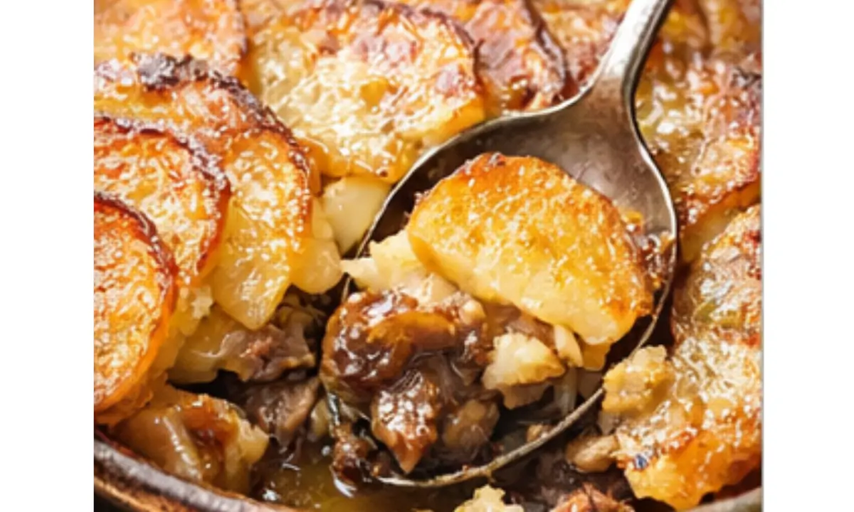 - The top potatoes should become brown and “shatter-crisp” at the edges.