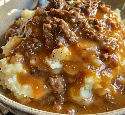 This familiar comfort dish is an ideal way to warm up on a cold day. The creamy mashed potatoes create a perfect foundation for the rich, savory ground beef gravy. …