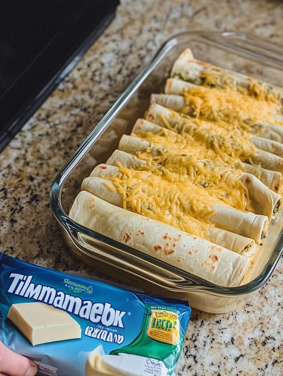 Pour the remaining enchilada sauce evenly over the top of the rolled tortillas. Use a spoon to ensure the edges are covered so they don’t dry out. Sprinkle the remaining Monterey Jack cheese generously over the top. Bake for 20–25 minutes, or until the cheese is melted, bubbly, and starting to turn golden brown at the edges.