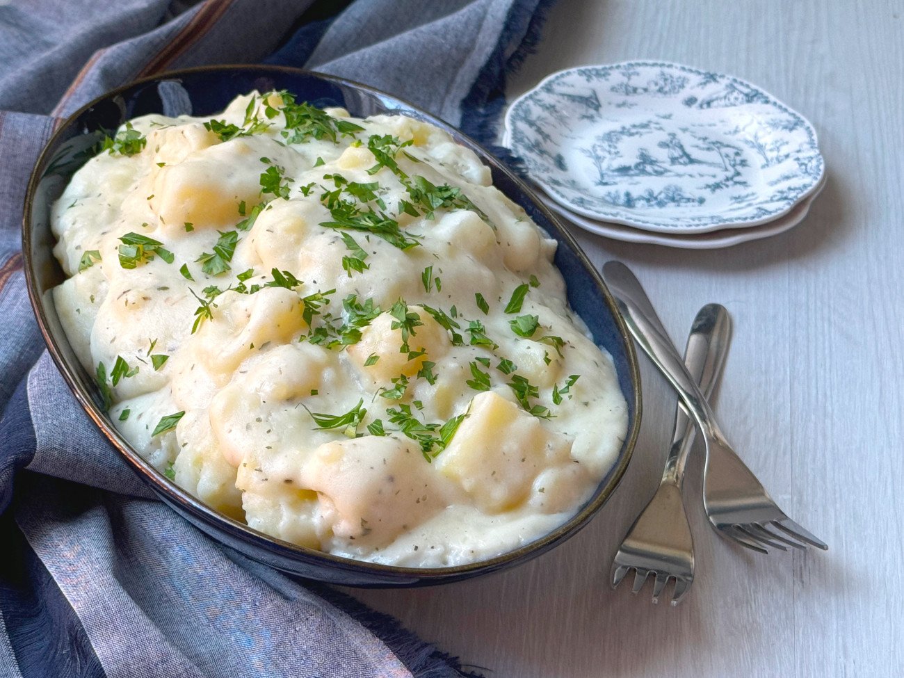 Reduce heat and add butter, milk, and cream. Season with nutmeg, which provides the signature Victorian flavor profile. As the mixture simmers, the fats from the dairy will emulsify with the starchy potato water, creating a thick, glossy liquid that coats each cube of potato.