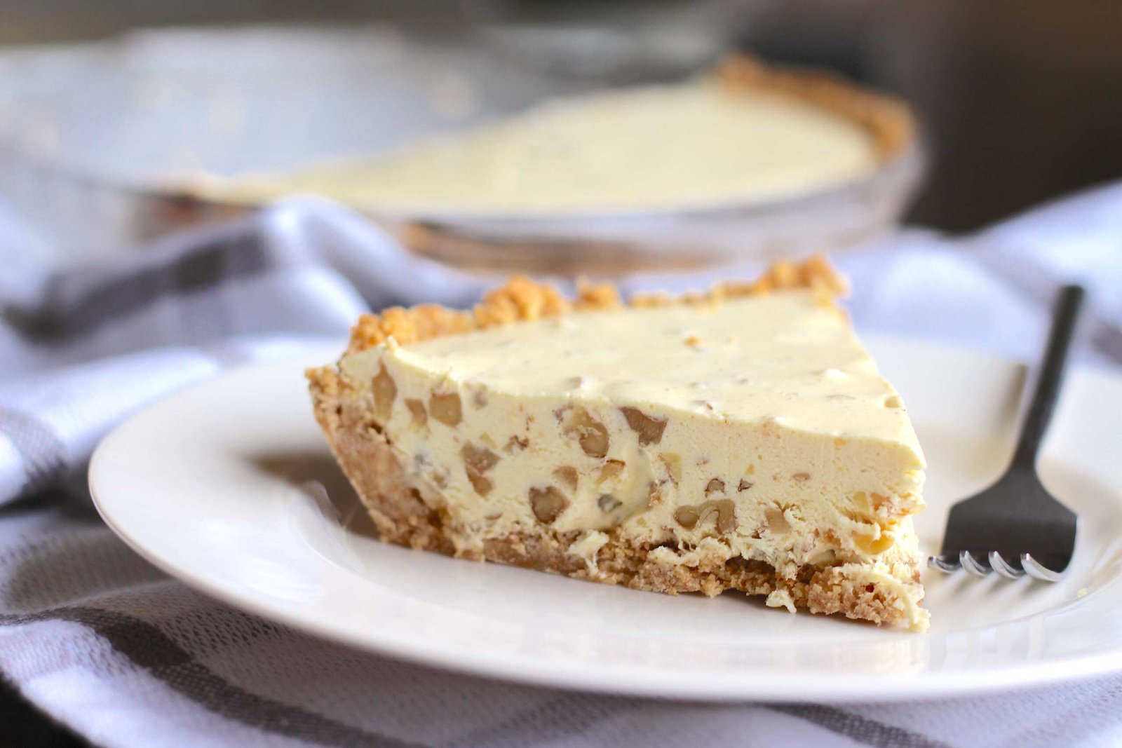 Fold the chopped walnuts into the thickened custard. The high viscosity of the base at this stage is what prevents the nuts from sinking to the bottom. Pour into the crust and chill for at least 4 hours. The “thermal set” in the refrigerator allows the lipids and starches to solidify into a perfectly sliceable wedge.